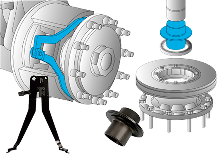 Tarkoitukseen valmistetut erikoistyökalut, hylsyt ja asennustyökalut takaavat työskentelyn onnistumisen. Näin jarrut on työstettävissä vaivattomammin / nopeammin toimintakuntoon.