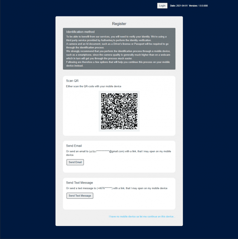 Suosittelemme käyttämään matkapuhelinta tunnistamiseen. Kameran laatu on yleensä paljon parempi kuin PC:llä ja prosessi on siten sujuvampi.