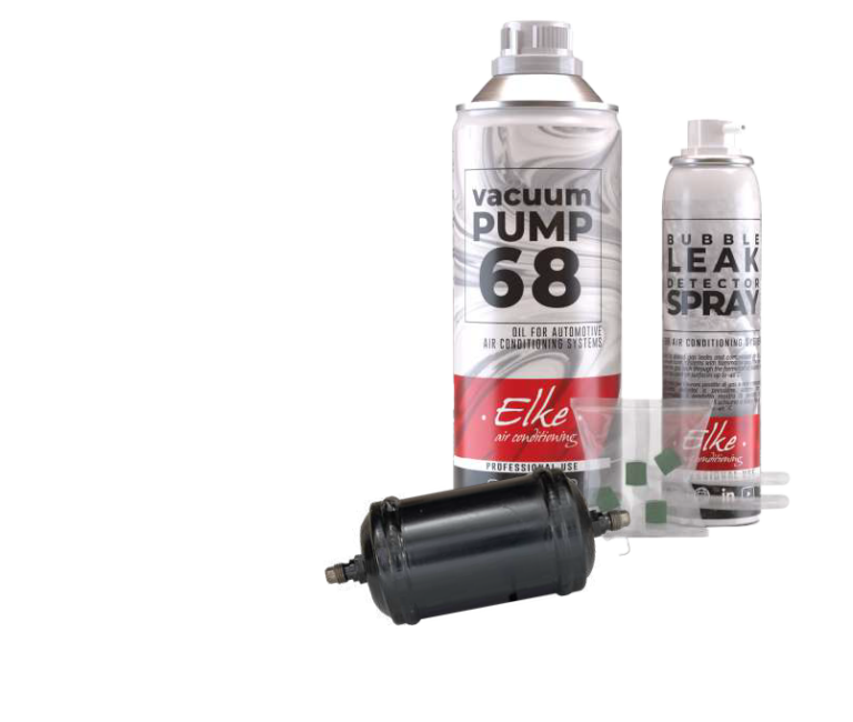 Sisältää: Kuivainsuodatin, ISO 68 alipainepumppuöljy 500 ml, vuodonetsintäspray 100 ml ja letkutiivisteet.