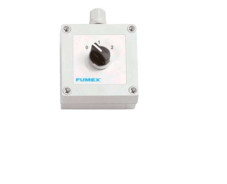 - Fumex SFC VSS säätimen avulla puhallin voidaan sammuttaa ja käyttää kahdella taajuusmuuntajaan ohjelmoidulla pyörimisnopeudella