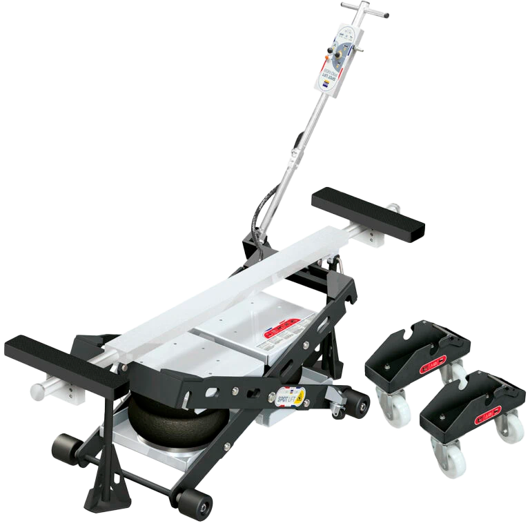 Nopea paineilmatoiminen apunostin nostaa auton etu- tai takaosan ylös ja helpottaa työtä esimerkiksi siirtoalustoille laitettaessa, korikorjaustöissä tai renkaiden vaihdossa.