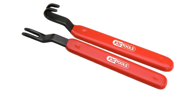 - Kumikahvaiset, metalliset työkalut kiinnikeklipsien ja kumitulppien irrottamiseen ehjänä
