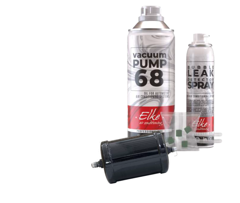 Sisältää: Kuivainsuodatin, ISO 68 alipainepumppuöljy 500 ml, vuodonetsintäspray 100 ml ja letkutiivisteet.
