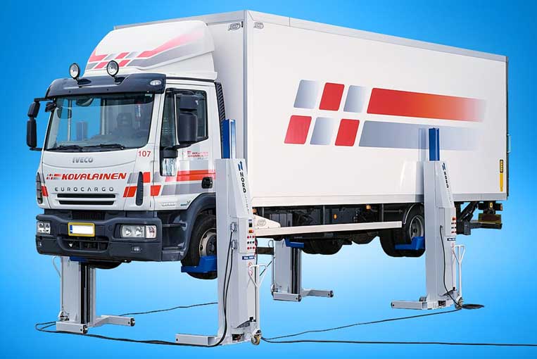 - HDL-6000 sähköhydraulinen nostopilarisarja kuorma- ja linja-autojen nostamiseen raskaan kaluston korjaamoilla.
