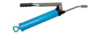 Tehokas ladattava rasvaprässi 1 metrin taipuisalla jakeluletkulla ja kantoremmillä.