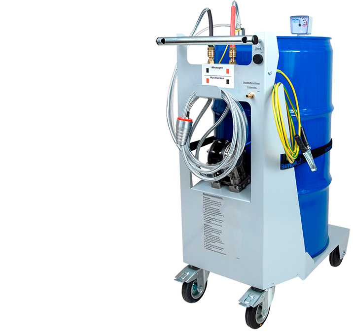 Paineilmatoiminen tyhjennysvaunu polttoainetankin turvalliseen tyhjentämiseen.