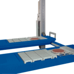 Sähköhydraulinen, Ravaglioli RAV4505L 4-pilarinostin, integroidulla ravistimella ja pyöränsuuntausvarustuksella.