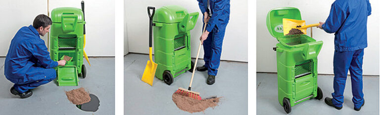 - Sitoo öljyn itseensä niin tehokkaasti, että jauheeseen sitoutunut öljy muodostaa rakeen. Rakeet eristyvät jauheesta, jolloin siivousjäte voidaan lapioida sihdin läpi takaisin astiaan ja vain öljyn sitoutuneet rakeet kaadetaan jäteastiaan jatkokäsittelyä varten. Tällä saavutetaan suuria säästöjä jätteiden käsittelyssä sekä imeytysjauheen kulutuksessa.