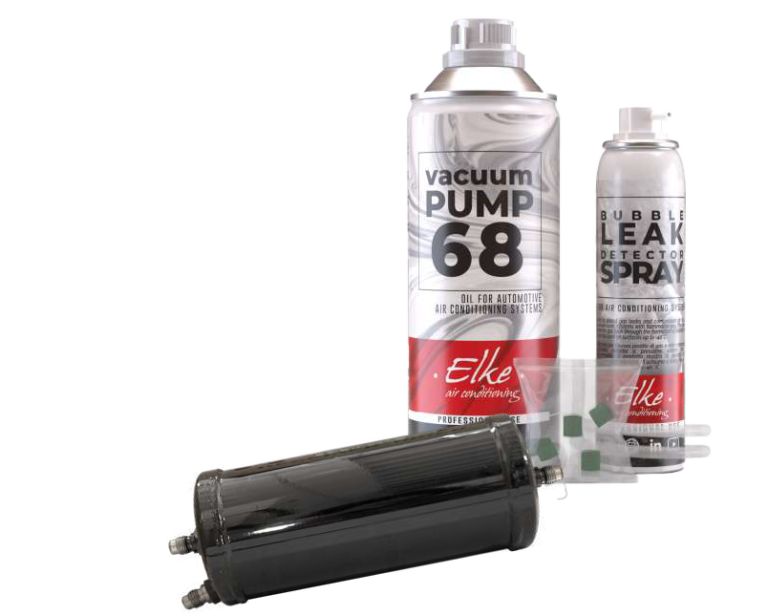 Sisältää: kuivainsuodatin, ISO 68 alipainepumppuöljy 500 ml, vuodonetsintäspray 100 ml ja letkutiivisteet.